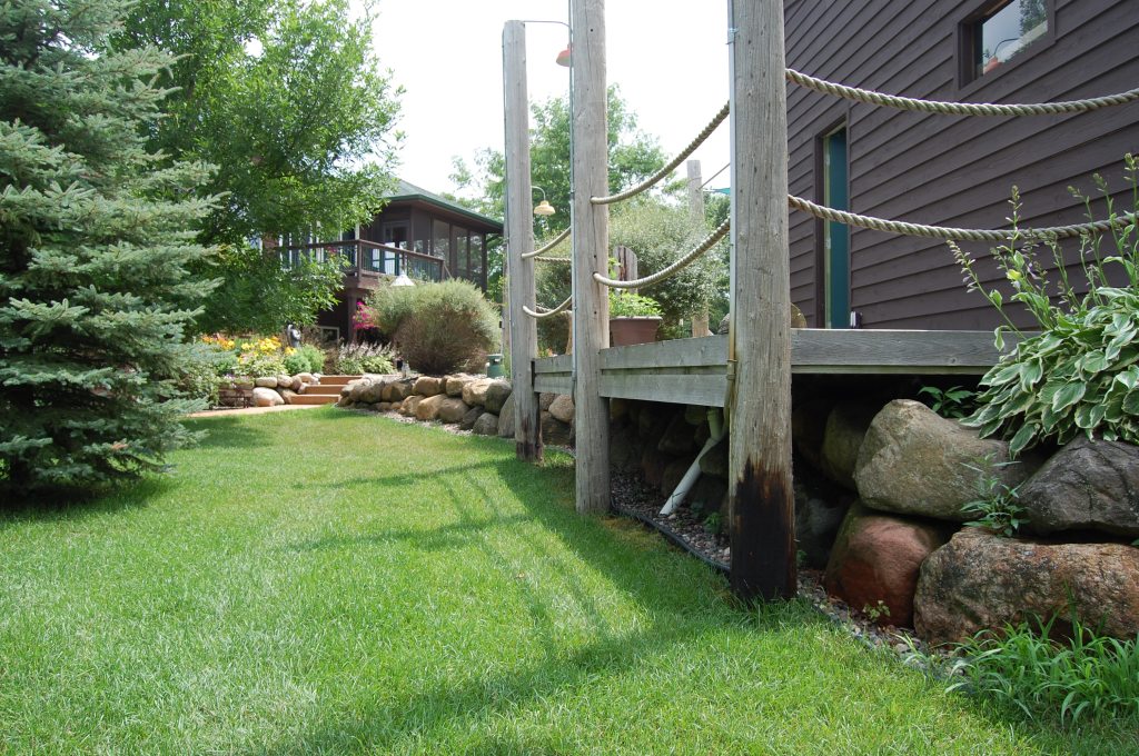 Have you moved into a home where the boulder wall was installed incorrectly? This happens more often than people might care to think. Kevin can help make sure that your new wall has correct placement of its boulders, and includes drain tile and landscaping fabric to prevent future deterioration of the wall and the land around it.